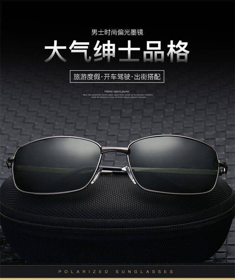 瑞玻尔日夜两用太阳镜男士墨镜驾驶镜偏光镜开车钓鱼司机镜方形变色眼镜 黑框灰片(高清偏光) 镜盒+镜布