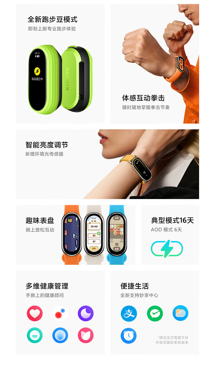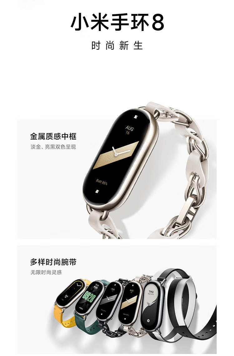 小米(MI)手环8 150种运动模式 血氧心率睡眠监测 多样快拆腕带 小米手环 智能手环 运动手环 亮黑色