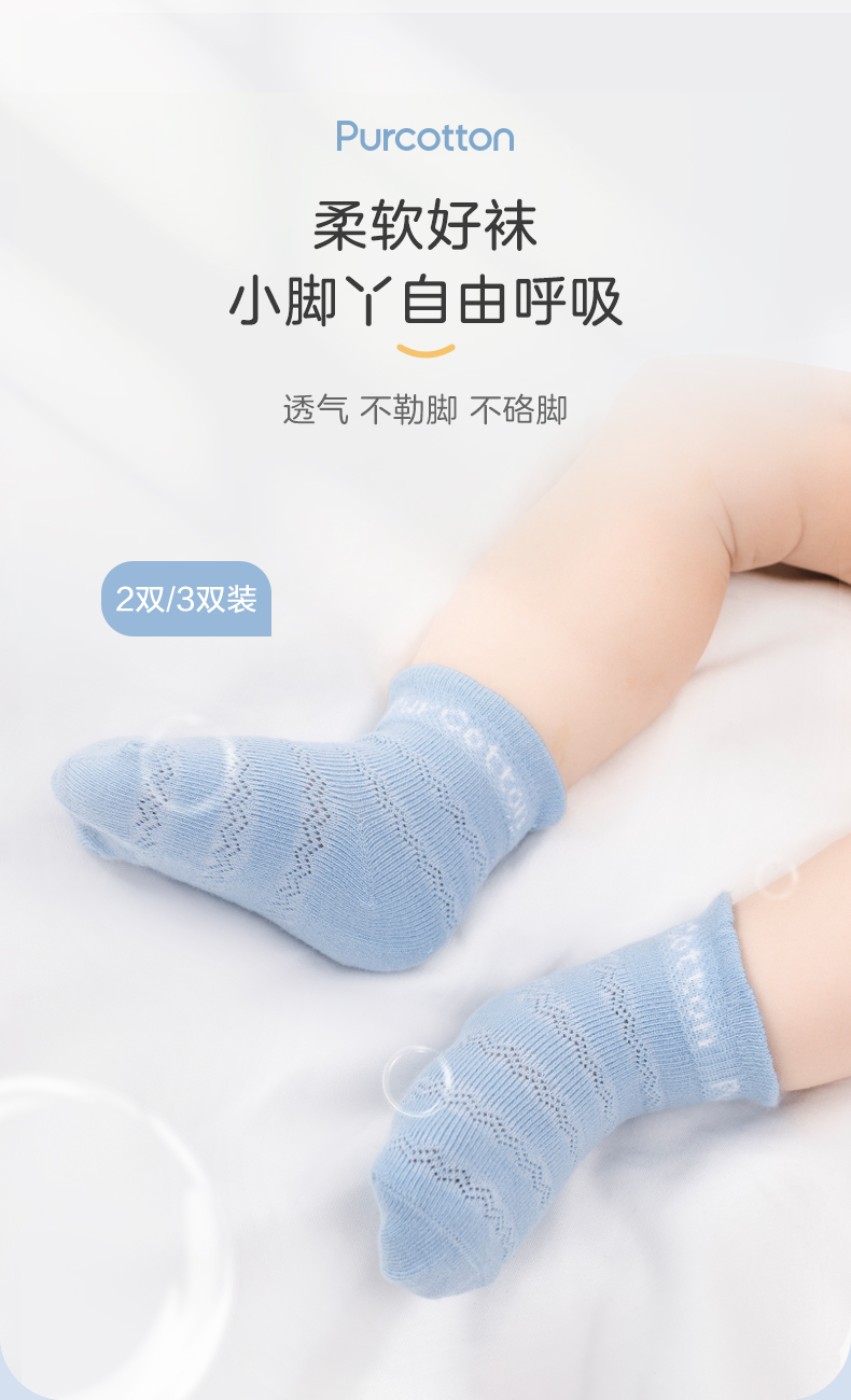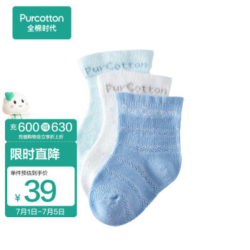 全棉时代婴儿袜子薄款男女童棉袜透气 蔚蓝+白+天蓝(3双装 中筒袜)7.5cm