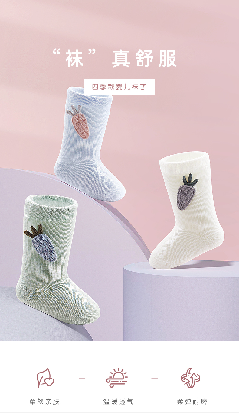 十月结晶婴儿袜3双透气男女宝宝透气宝宝新生儿长筒可爱超萌四季通用