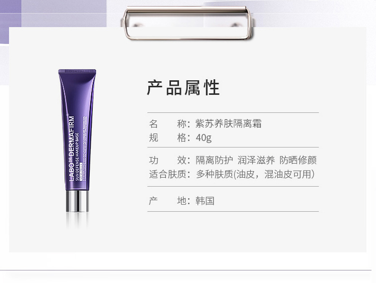 德妃(DERMAFIRM)紫苏隔离40g SPF35 PA+++ 防晒霜隔离霜妆前乳素颜霜遮瑕 护肤品