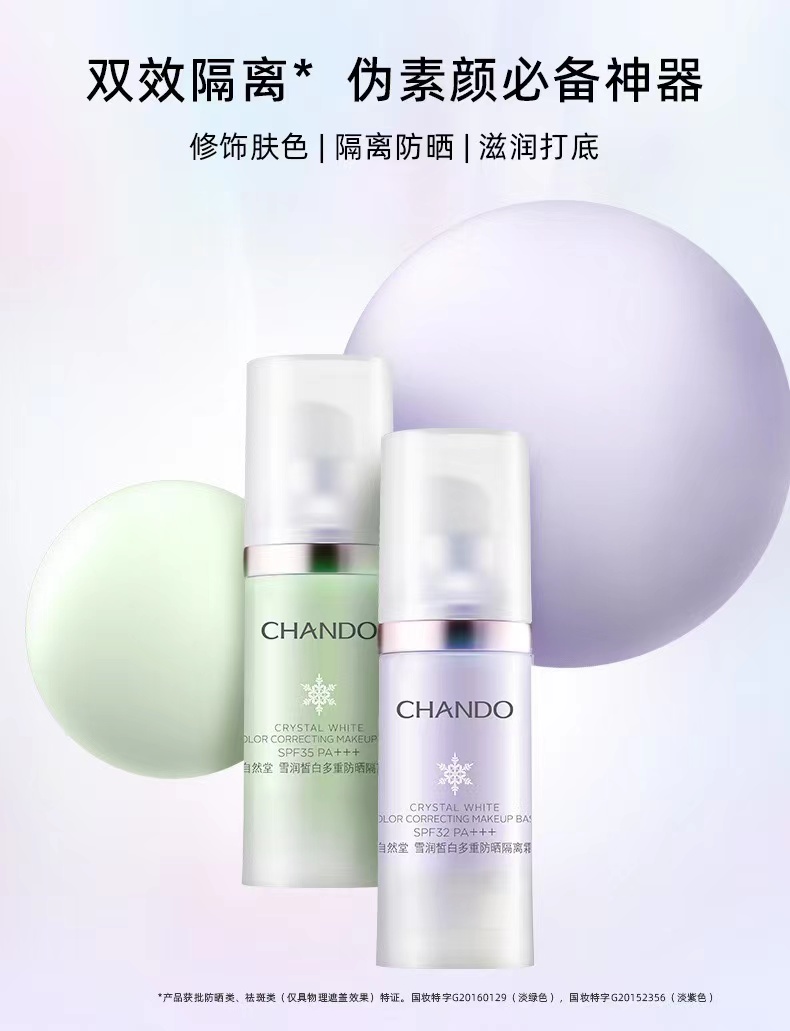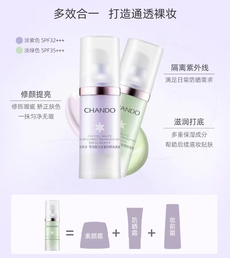 自然堂(CHANDO)雪润皙白多重防晒隔离霜(淡紫色)SPF32PA+++ 30ml