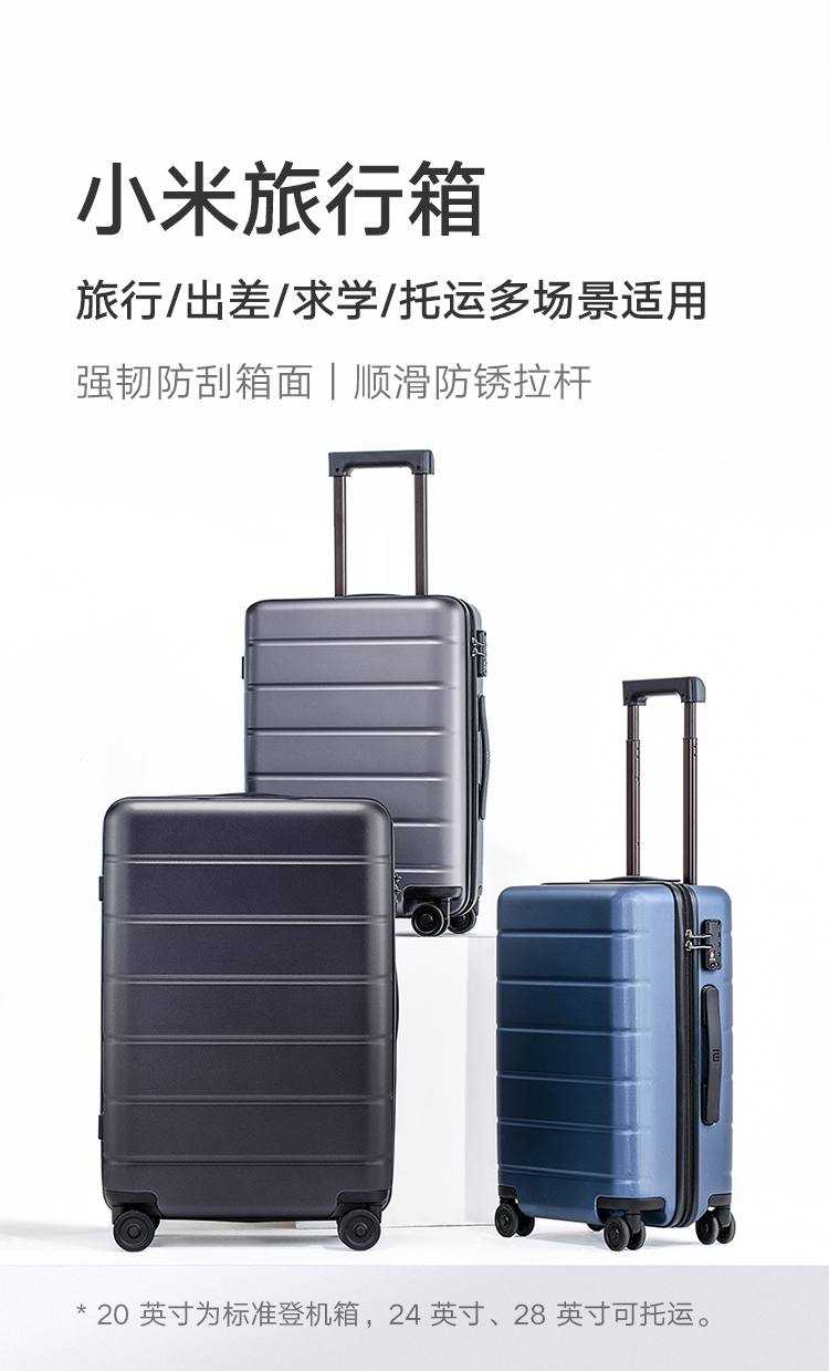 小米(MI)旅行箱万向轮拉杆箱PC箱壳男女行李箱20英寸登机箱灰色